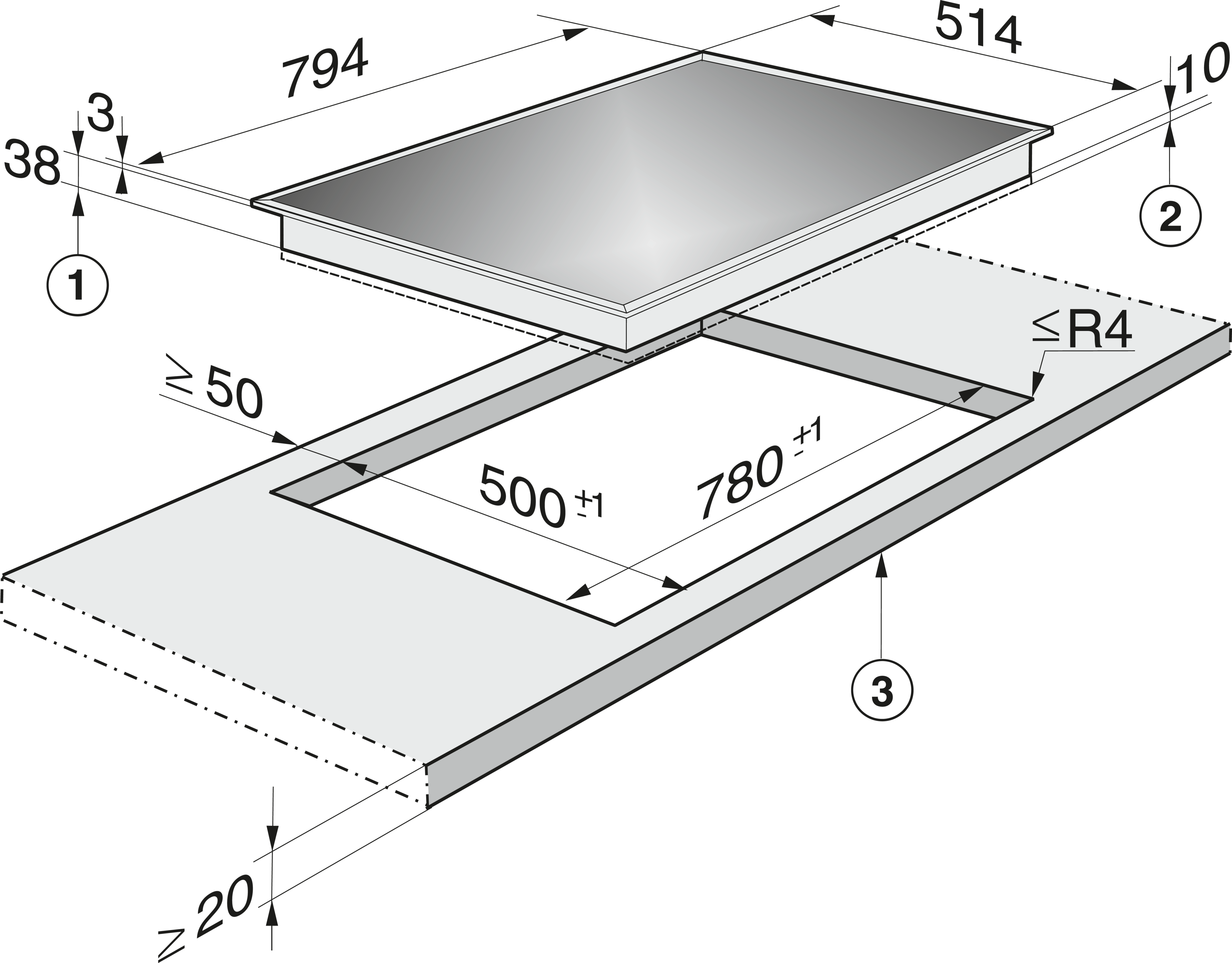 Размеры выреза в мм (глубина) для накладной панели